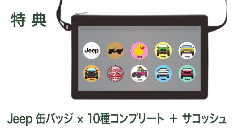 500スコア:店舗で引き換え!Jeep缶バッジ10種コンプリート+サコッシュ