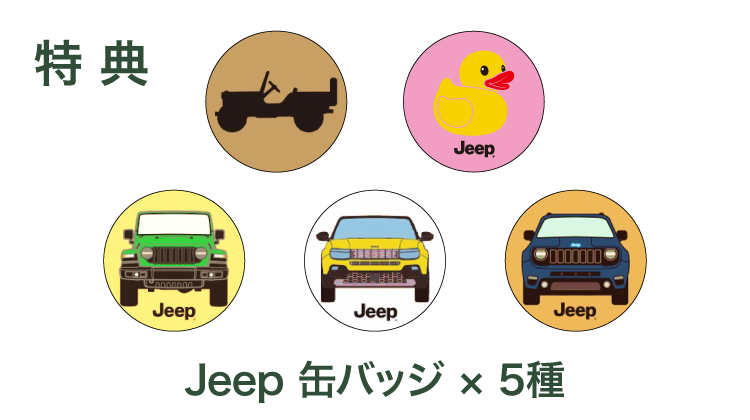 100スコア:店舗で引き換え!Jeep缶バッジ5種